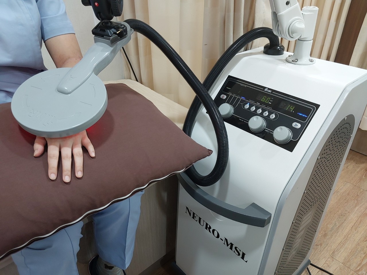 순간적 강한 자기장 펄스를 신체에 투과시키면 생체 전류가 발생하게 됩니다. 이러한 생체 전류가 인체 깊숙이 침투하여 신경조직과 근육조직을 자극하여 세포의 기능을 살려내는 치료법입니다. 해당 치료법을 주사치료와 병행 시 효과가 증진됩니다.