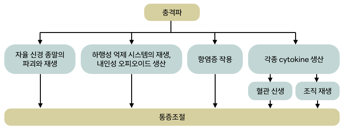 체외충격파 치료는 요로결석 파쇄 치료에서 시작되었습니다. 체외충격파는 골형성을 유도하는 능력을 이용하여 골절의 지연 유합, 불유합 치료에 가장 먼저 사용되었습니다. 이후 석회화 건염 치료에 이용되었으며 힘줄 부착부변증(enthesopathy)에 대한 통증 조절 효과가 발견되어 상완골 외상과염 족저근막염이 이용하게되었습니다. 체외충격파는 비 연속성 압력파입니다. 발생장치에는 초점형 체외충격파와 압력파 발생장치가 있습니다. 효과로는 통증조절작용, 조직재생, 골유합 촉진 작용, 신경근 접합부에 대한 작용을 꼽을수 있습니다.